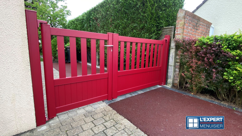 Nous venons d’installer pour nos clients un portail aluminium 2 vantaux asymétriques à manœuvre manuelle :