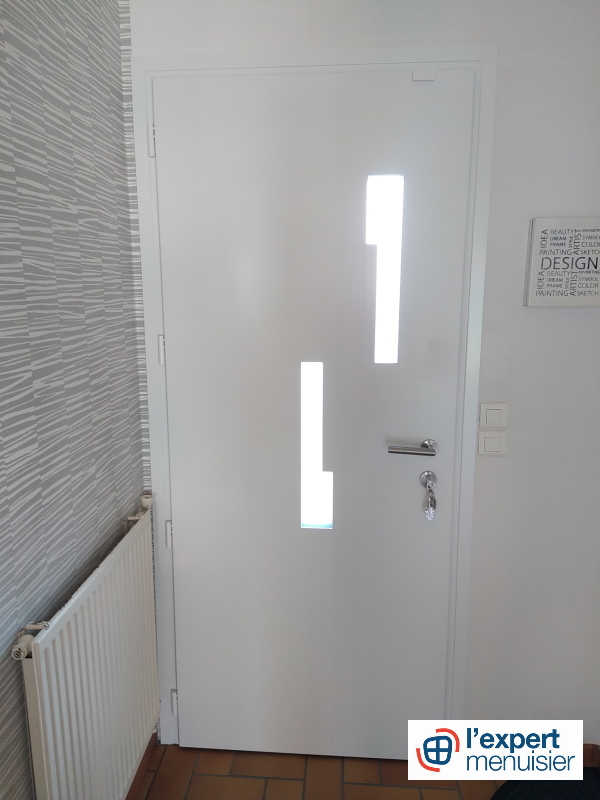 Exemple d’une installation dans le département 62, dans le Nord-Pas-de-Calais sur la commune de Courrières à proximité de notre agence, nos équipes ont installé une porte d’entrée aluminium isolée KLINE modèle JAZZY de 72mm d’épaisseur.