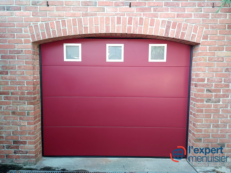 Nos techniciens poseurs ont installé une porte de garage sectionnelle avec hublots à CANTIN près de DOUAI.