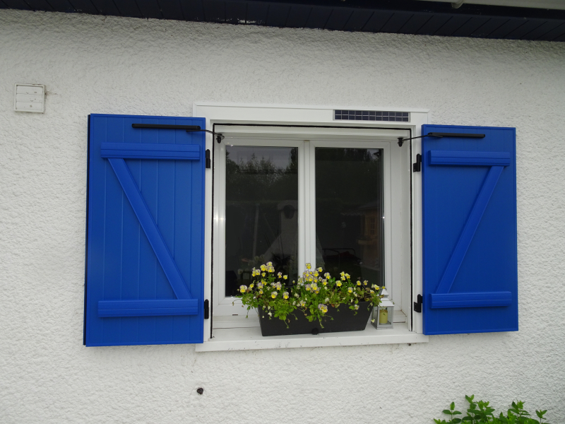 Volets battants SOLAIRES LUMIS modèle Mistral, coloris : BLEU RAL 5010 texturé